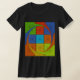 The central portion features a grid or checkerboard pattern composed of squares in red, golden yellow, green, and cyan.