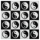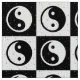 Checkered black and white positive and negative Zen yin yang symbols themed Surface Pattern Design Fabrics