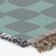 A quality printed throw has its advantages. This is a much finer weave throw than its loopier cousins, and though lighter, it is worth the investment for custom room accessorizing. The back is much prettier than the typical brown, and the fringe on the long sides very vivid, the selvage nicely done. Before photographing, I washed the throw in cold water, delicate, with a thicker woven throw the same size. On tumble dry low, this throw was dry in half the time as the other. This is a very practical quality if you use throws for furniture covers or to wrap up in frequently. The sleekness of the fabric makes it a great layer for accenting or protecting without the feeling of sitting on too much stuff. Perfect for napping or when you feel a light chill coming on. The color printing is beautiful and on this fabric, matched the design and color of my Photoshop image. This is an advantage for blending room fabrics and colors. The fringe on the short sides prints the colors from the design image and therefore varies from the side fringe. I streaked a white fractal line through the plaid pattern to give the illusion of weaving. This printed as crisp as an illusory thread, and put some white in the short side fringe, showing another advantage of print vs loomed- for artistic purposes, line lines, detail, and color integrity can be planned and preserved. My loomed throws have color limitations and more of a needlepoint texture. Print throws reproduce an exact image. The throw felt a little stiff straight out of the package, but this went away in the first delicate wash. Of course I searched the wash water for ink or bleeding and there was none.