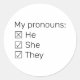 Which pronouns should people use for you? You can choose one or more here. This design includes the most common three pronouns: he, she, and they.