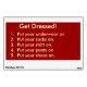 Post this Checklist for Getting Dressed Wall Decal in your loved one's bedroom to help him or her get dressed independently. Providing step by step instructions for simple tasks is extremely helpful to a person with Alzheimer's related memory problems.
