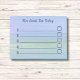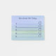 This Goals Post It Notes small 4x3 sticky notepad is a lined, numbered to do list with checkboxes which can be personalized with a different name for the list, or you can leave as is to set 5 goals for each day. It has a coastal vibe with a pastel blue green gradient texture design.