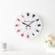 An elegant and simple chess inspired wall clock featuring red and black graphic chess pieces with hour and minute indicators on a clean white background. The customizable text makes this time piece a great personalized gift idea for the chess playing enthusiast.