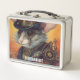 This is a standard metal lunchbox that appears to work just fine. We designed this box ourselves with an uploaded photo and custom text on the front and back. It looks absolutely beautiful except the front of the lunchbox is not centered like it shows in the photo. The print borders don't align with the inset flat part of the box where the preview photo online showed it perfectly centered in there. The back looks nice and centered though.