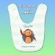 This bib has a cute drawing of a monkey and is ready for you to personalize with your baby's name. The accompanying caption is simply "Cheeky monkey!" or you can customize this too. The background has broad stripes in colors of soft mint green and white. For baby boys and baby girls.