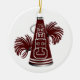 Pretty maroon, white, and silver tone cheerleader's ornament, with cute graphics of a maroon megaphone and pom poms, on the front. Graphic text, on the megaphone reads CHEER. Personalize the white text, on the maroon back, for your special spirit leader. Great for the Christmas tree or hanging in her bedroom, and makes a great fan pull too.
