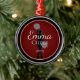 This ornament has a black shadow of a cheerleader with Grey-silver-like pompoms. Sample text of Emma, Cheer and your choice of date [shown 2019]. Colors shown are Deep Red, Grey Silver-like color, White and Black. Nice choice for a spirit award or team medallion if you lengthen the ribbon or a nice keepsake ornament for your Christmas tree [which it is].