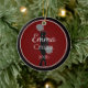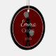 This ornament has a black shadow of a cheerleader with Grey-silver-like pompoms. Sample text of Emma, Cheer and your choice of date