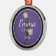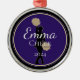 This ornament has a black shadow of a cheerleader with Gold pompoms. Sample text of Emma, Cheer and your choice of date [shown 2024]. Colors shown are Purple, Gold-like color, White and Black. Nice choice for a spirit award or team medallion if you lengthen the ribbon or a nice keepsake ornament for your Christmas tree [which it is].
