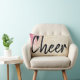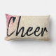 Cute and girly pillow features a faux background of gold and pink glitter with the words "Cheer" scrawled across in black grungy font