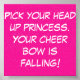 keep your head up princess. your cheer bow is falling!