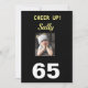 Celebrate her 65th birthday with a "Cheer Up! card. She will smile at the funny grumpy girl and enjoy the happy verse on the back of the card. The black and yellow colors pop with fashionable style. The modern design displays the cheerful sentiment for a woman's milestone birthday.