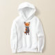 A hoodie with this charming fox design is perfect for any animal lover. This design features a friendly cartoon fox wearing a jacket with a hoodie, making it an adventurous and playful visual art.
