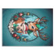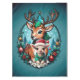 Cheerful and inviting Christmas illustration with a cartoon deer and a lamb, surrounded by a harmonious blue-green background that creates a wintery atmosphere. The deer stands protectively behind the lamb, who is dressed in a cozy green sweater and has a bright red Santa hat on his head. Both radiate joy and friendship, their big, expressive eyes sparkling with enthusiasm. The lamb looks out into the world curiously and happily, while the deer reinforces his presence with a gentle smile and draws the viewer into the festive spirit.