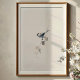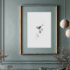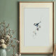 The little chickadee is adorned with its iconic deep black cap and bib, sharply contrasting with its crisp white or snowy cheeks. Its back and wings are painted in soft, cool shades of bluish-grey or slate, while its flanks show subtle hints of warm, pale brown, buff, or blush-peach. It perches delicately on a slender, understated branch, featuring muted, faded leaves in tones of soft grey and pale beige or dusty rose, adding to the artwork's quiet elegance. This piece is a celebration of the beloved backyard visitor, bringing a touch of quiet charm and natural beauty to any space, perfect for bird lovers, nature enthusiasts, or those who appreciate a calm, sophisticated aesthetic.
