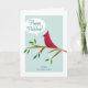 A retro-inspired red cardinal sits on a tree branch happily spreading holiday greetings with a cheerful chirp. Personalize the card with your own details and a long-form message about the past year to update family and friends.