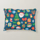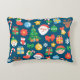 Cheerful Christmas Pattern on Blue Decorative Pillow