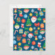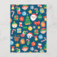 Cheerful Christmas Pattern on Blue Holiday Postcard