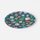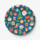 Cheerful Christmas Pattern on Blue Paper Plates