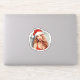 A joyful character adorned in a Santa hat radiates festive cheer, embodying the essence of Christmas. Her captivating smile and wavy blonde hair bring warmth to holiday celebrations. This design is perfect for conveying holiday spirit and merriment.