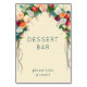 This wedding tabletop sign features a charming floral arch design with an array of colorful flowers and foliage, creating a vibrant and inviting atmosphere. The layout is balanced, with the text "DESSERT BAR" prominently displayed in a serif font, followed by "please take a treat!" in a simpler sans-serif style, both in a muted teal color that contrasts beautifully against the cream background. The digital illustration technique gives it a polished and modern look, perfect for adding a touch of elegance to your celebration. Ideal for weddings or festive gatherings, this sign sets a cheerful and welcoming mood, encouraging guests to indulge in sweet treats.