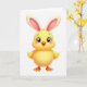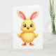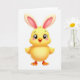 This card features a cute, animal-like character that blends a small bird and a bunny, centered on a bright white background with a sunny golden-yellow body. Its long ears curve upward with soft pink on the inside, and a tiny feather tuft sits on top like a gentle flourish. Large dark eyes with fine lashes look straight ahead, and the rosy cheeks read like a bashful blush, as if it’s sharing a sweet moment with someone special 🐰. A small orange beak sits open in a friendly grin, while little wings lift outward in a welcoming pose that feels like an invitation to come closer 🌷. Even lighting keeps the colors smooth and bright, showing subtle shading along the rounded belly and cheeks. A short greeting appears near the top in a light pink color, with a smaller line of text tucked beneath it in soft gray. At the bottom, the orange webbed feet stand out against the white space, with the toes neatly separated and slightly angled outward.