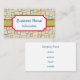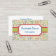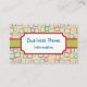 Bright, fun, squares decorate this business card. Customize the information on this business card to suit your needs, add or delete information as needed. The design is from original art. Use this business card for a preschool, pre-school, daycare, day care, childcare, child care, babysitting, nursery school, pediatrician, dentist, tutor, etc....