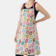 Funny and sweet colorful food themed apron with donuts with pastel-colored icing and sprinkles. Pink blue brown palette