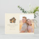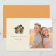 This wedding save the date features a charming split layout with a rustic wooden cabin illustration on one side and a warm, naturalistic photo of two individuals on the other. The design uses soft earthy tones and a clean, modern sans-serif font to create an inviting and cheerful atmosphere. Perfect for couples who love cozy, countryside vibes, this template balances whimsical illustrations with real-life photography, setting the tone for a joyful celebration.