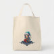 The printing came out very well, better than I had anticipated. The natural color fabric is sturdy with strong seams and comfortable handles. This tote fits easily over my shoulder. As it is filled, the bottom flattens out--very cool! I would buy this product again. This grocery tote holds a lot of groceries! The image quality was very good. The colors were a little darker than I had expected. The darkness may have been due to printing on a natural color fabric rather than on white. The cat design is attractively centered on the tote. The spirit of the design is very lively, just as it appears on the Zazzle website.
