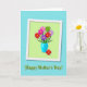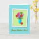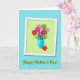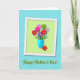 This greeting card features a lively bouquet of stylized flowers in rich reds, hot pinks, soft purples, and zesty lime greens, each with a sunny yellow center, gathered in a glossy turquoise vase. The arrangement sits on a pale green rectangular panel with a white border, giving the layout a layered, framed look that feels like a gentle hug ❤️. Crisp edges and soft drop shadows add depth, as if the flowers are leaning forward to greet the viewer. One red bloom slips outside the vase near the base, a small off-balance detail that reads like a sweet, affectionate nudge between close loved ones. Behind the framed panel, the background is a calm teal with a light texture that keeps the bright bouquet feeling tender rather than loud. Centered below the framed art, the words “Happy Mother’s Day!” appear in medium green lettering with a faint shadow, sitting neatly against the teal field 🌼. The teal background shows a subtle textured grain, while the pale green panel and white border cast a gentle shadow beneath them.
