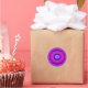 Brighten the day with this cheerful colored sticker which features a stylized abstract flower in shades of indigo, magenta, fuschia, pink and turquoise blue on a brilliant purple background.