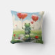 Cheerful frog red balloons throw pillow