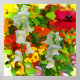 This colorful poster is a feast for the eyes! It features an informal garden setting with pink and white snapdragons, nasturtiums in orange, yellow and red and one red poppy. The original photograph has been digitally enhanced to produce an abstract impressionistic pattern.