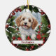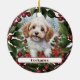 This customizable ceramic ornament features a heartwarming Christmas-themed illustration of a lively white Cockapoo puppy frolicking in a Christmassy winter scene.