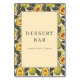 This wedding tabletop sign features a playful and inviting design with a central beige rectangle bordered by a black frame, surrounded by a repeating pattern of avocado illustrations. The color palette includes vibrant greens for the avocados, bright yellow flesh, and deep brown pits, creating a cheerful and naturalistic look. Elegant serif typography spells out "DESSERT BAR" followed by "PLEASE TAKE A TREAT!" in a classic style, enhancing the welcoming mood. Perfect for adding a touch of whimsy to your dessert station, this sign combines fresh produce motifs with a modern graphic style, making it ideal for casual yet stylish celebrations.