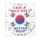 The design centers around the flag's swirling red and blue Taegeuk symbol, which is encircled by repeating elements of the flag's black trigrams. Bold, cheerful text sends a simple but powerful wish: "HAVE A NICE DAY" and "BETTER NIGHT." This stunning visual blend of patriotism and positivity makes it a perfect piece for anyone who loves South Korea or simply wants to spread good vibes.