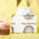 A sweet kid birthday brown wrapping paper with the illustration of a whimsical hedgehog and the words "Happy Birthday" . © ArianeC Illustrations