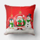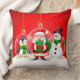 Cheerful Holiday Characters Santa, Penguin Throw Pillow