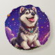 Cheerful Husky Against Starry Sky Round Pillow