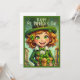 A cheerful leprechaun with bright green eyes and a broad smile holds a gold-filled gift box. Dressed in a classic green suit with golden buttons and a matching top hat, he radiates pure joie de vivre. Surrounded by flying shamrocks, streamers and festive decorations, he spreads the cheerful mood of St. Patrick's Day. Decorated houses and a festive street can be seen in the background, capturing the hustle and bustle of this special day. A perfect motif for anyone who wants to celebrate Irish happiness! 🍀✨
