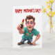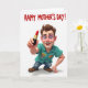 Designed with a bright digital illustration style, this card features a cheerful, stylized man set against a plain white background that keeps all attention on his friendly gesture ❤️. He has wide, expressive eyes with soft purple eye shadow, rosy cheeks, and an open smile that feels like he’s sharing a joke with someone he cares about. His brown hair has extra volume, adding to the lively, animated look. He wears a teal polo shirt with two small abstract color patches, blue jeans, and brown shoes, and he’s shown in a crouched, leaning-forward pose as if stepping closer to offer a small gift. His right hand reaches out toward the viewer holding a bright red lipstick in a gold-and-black case, like a playful offering meant to make someone feel seen 🌼. Across the top, the words “HAPPY MOTHER’S DAY!” appear in large red hand-lettered text, arcing over his head. The lighting stays crisp and bright, with the lipstick’s scarlet tip and shiny case catching the strongest highlights against the white space. Share your Mother’s Day sentiments with someone who deserves a little extra love today.