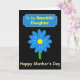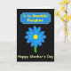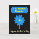 This design shows a deep black background that makes the bright colors stand out with striking contrast. Near the top, an ornate banner in rich blue with a thin yellow border frames the words “To My Beautiful Daughter” in warm yellow lettering. The banner sits like a gentle crown above the main image, setting a close, affectionate tone ❤️. Centered below, a simple daisy-like flower has blue petals arranged evenly around a sunny yellow center, giving it a sweet, caring look. A slim green stem drops straight down from the flower, adding a calm, grounded touch to the layout. Beneath the flower, “Happy Mother’s Day” appears in matching yellow text, placed prominently and easy to read 🌼. The limited palette of blue, yellow, and green against black keeps the focus on the tender message and the single bloom. The flower’s blue petals radiate around the yellow circle, with the green stem aligned neatly under the center.