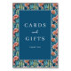 This wedding tabletop sign features a charming design with a central navy blue rectangle framed by a lively border of illustrated cacti adorned with pink flowers and orange fruits. The symmetrical layout creates a balanced, harmonious look, while the clean lines and smooth gradients give it a modern yet whimsical feel. Elegant serif typography highlights the phrases "CARDS and GIFTS" and "THANK YOU," adding sophistication to the cheerful theme. Perfect for expressing gratitude at your event, this sign combines botanical elements with a touch of playful charm, making it an inviting addition to any celebration.