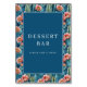 This wedding tabletop sign features a playful and inviting design, perfect for directing guests to the dessert bar. The central navy blue square with crisp, clean typography reads "DESSERT BAR" in bold letters, followed by "PLEASE TAKE A TREAT!" in a smaller font, creating a modern and cheerful vibe. Surrounding the text is a vibrant pattern of stylized cacti adorned with pink flowers against a teal background, evoking a whimsical desert theme. The balanced composition and bright color palette enhance its festive atmosphere, making it an ideal addition to any celebration where sweet treats are served.