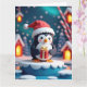 Cheerful Penguin with Gift in Snowy Christmas Card