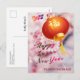 Cheerful Pink Flowers Lantern Chinese New Year Holiday Postcard
