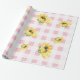 Pink Gingham Sunflower baby shower wrapping paper. Cheerful design.