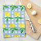 Cheerful Preppy Yellow Lemons Blue White Check Kitchen Towel
