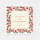 These wedding napkins feature a charming vintage design with a playful cherry motif bordering the edges. The central area showcases elegant serif typography, providing a classic and sophisticated touch. With a cheerful color palette of bright red cherries against a cream background, these napkins create a warm and inviting atmosphere perfect for celebrating your special day. The balanced layout and stylized illustrations add a whimsical yet refined aesthetic, making them an ideal choice for any wedding celebration.